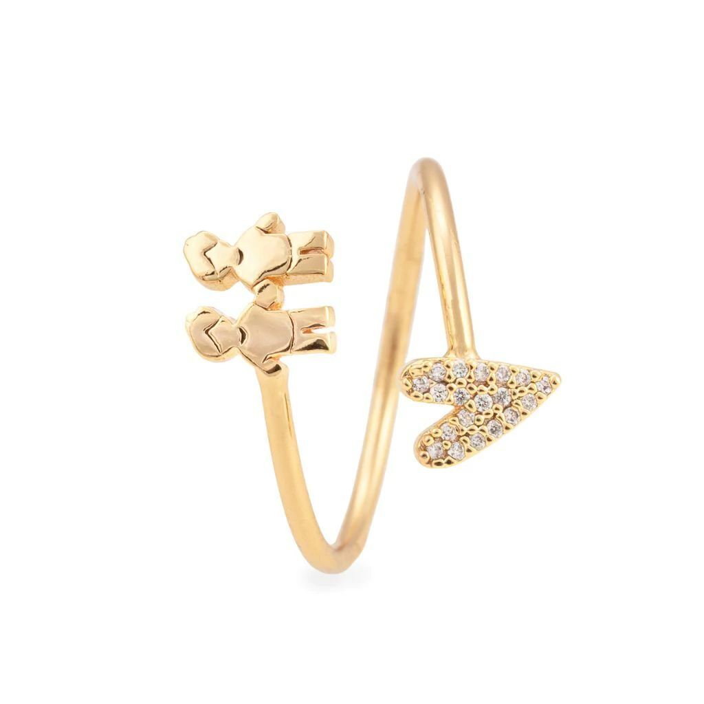 Anel Regulável 2 Filhos Meninos com Coração Cravejado e com Banho em Ouro 18k