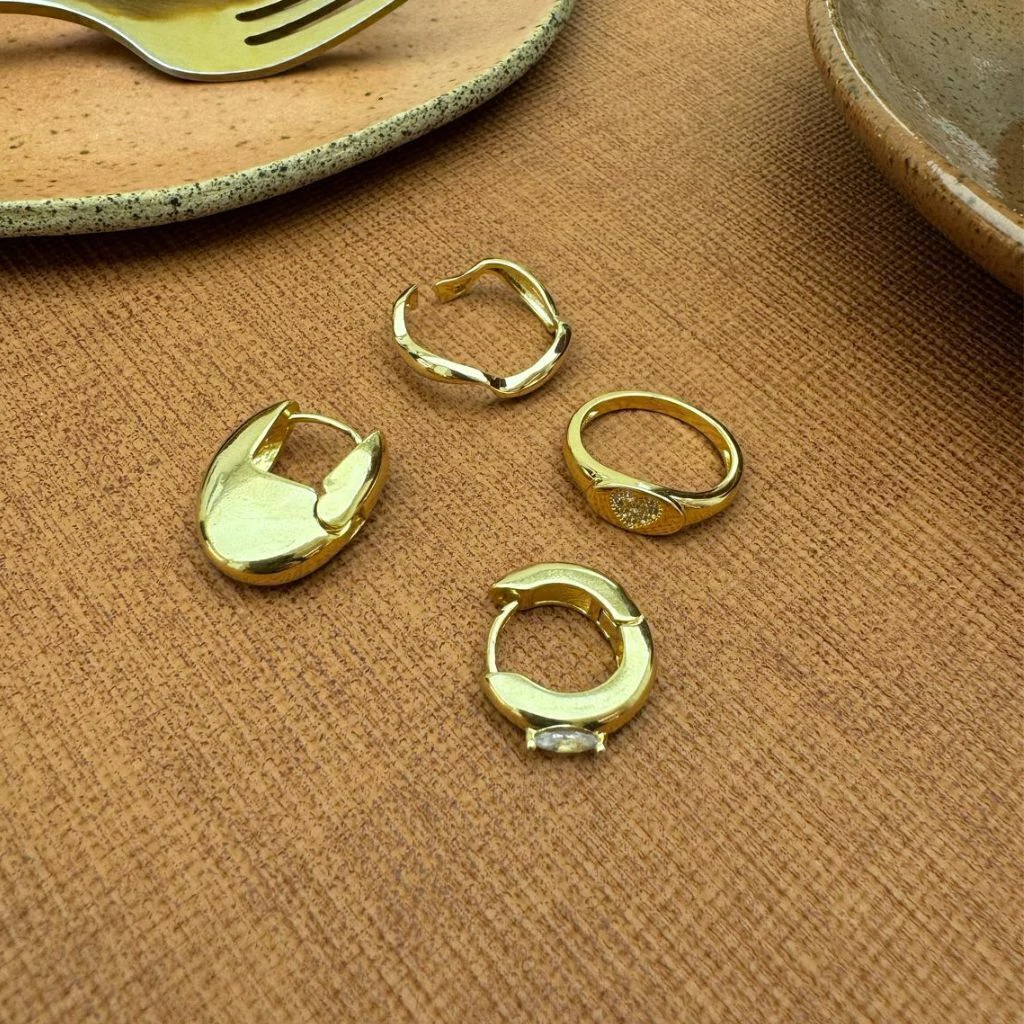 Com banho dourado e uma pedra central em formato navete, esse modelo é perfeito para quem ama um visual elegante, mas sem exageros.