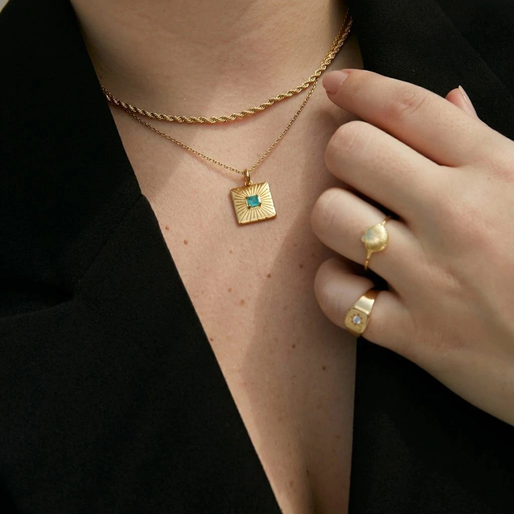 Encontre o equilíbrio perfeito entre o moderno e o vintage com este colar exclusivo. Seu pingente em forma de medalha quadrada retrô destaca-se pela zircônia azul, que adiciona um toque de cor vibrante e sofisticação. Ideal para quem deseja um acessório estiloso capaz de transformar qualquer look em uma produção elegante e cheia de personalidade.