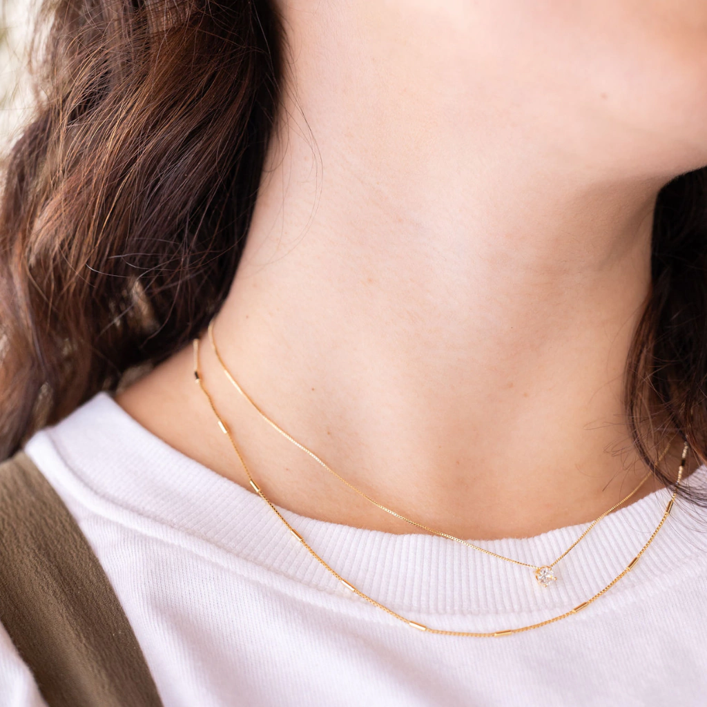 Colar com banho em ouro amarelo 18k, modelo delicado com ponto de luz. É uma peça minimalista que pode ser usado sozinho ou em combinações com outros colares miamaia, como a choker canutilho.